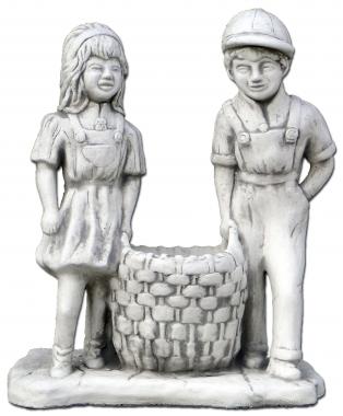 Pojke och flicka med stor korg kruka i betong – Krukor